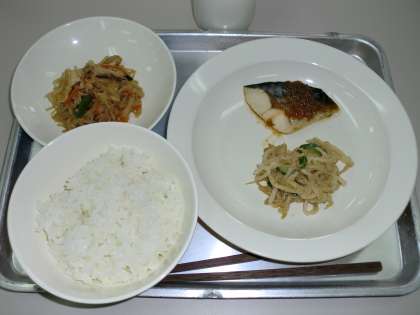 ごはん 牛乳 魚のステーキソース ごま酢かけ