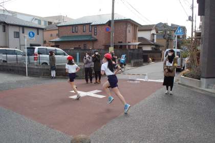 実施場所は、校庭、及び「せせらぎ公園」までの緑道でした。