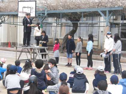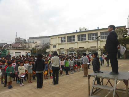 そして最後に、看護当番の先生から週目標『自分の役割に責任をもって 学校をきれいにしよう 〜後かたづけ〜』のお話がありました。