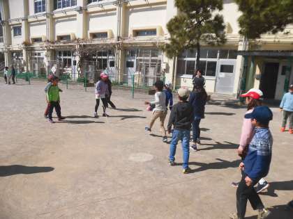3月8日(水)。風はまだまだ冷たいのですが、春を思わせる日差しが、代沢小学校に届きました。今日もみんなは元気いっぱいに外遊びに興じました。