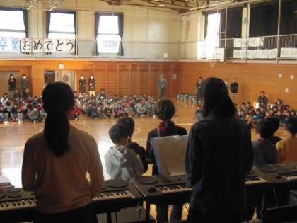 はじめに。昼休みに合唱を練習している有志の子供たちによる歌『マイ バラード』の披露がありました。