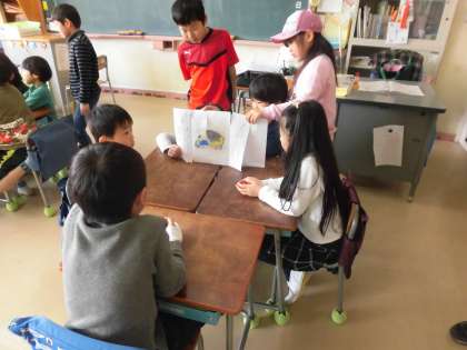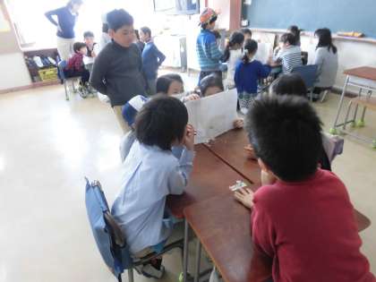 3月11日(土)の3時間目。2年生は国語の授業で学習してきました『フレデリック』を、1年生に紹介しに、各教室へと行きました。