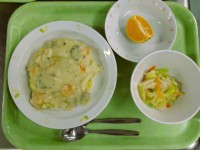 とりめし 牛乳 呉汁 ししゃものからあげ くだもの
