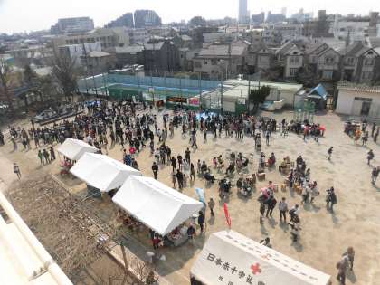 3月19日(日)の午前11時から午後2時まで。代沢小学校の校庭にて「校舎・校庭お別れ『代沢まつり』」を行いました。