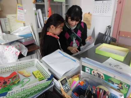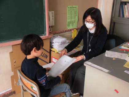 3月23日(木)の修了式の後、各教室にて通知表「わかば」を渡しました。