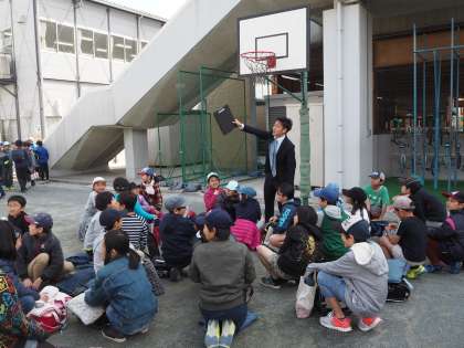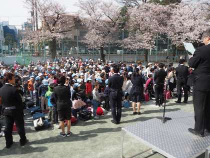 始業式では担任教諭の発表がありました。その後、校庭で写真撮影や、簡単なゲームなどをして心をほぐし、今日は下校です。新学期に向け、子どもたちは期待に満ちた目で下校していきました。