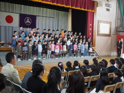校長先生のお話、来賓の方々からのお祝いの言葉、2年生による歓迎の言葉・歌、きちんと座って聞けました。初めて聞いた代沢小学校の校歌も、これから歌えるようになるのが楽しみですね。