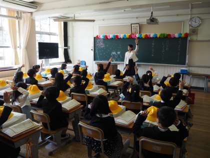 初めて先生から呼ばれる名前に、元気よくお返事できたでしょうか。手遊びや、人形劇で楽しく過ごしました。今日から小学生、新しく始まる学校での生活が楽しみですね。