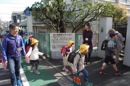 代沢小学校では生活指導の一巻として、あいさつ週間を設定して取り組みを行っています。代表委員が朝、校門に立ち登校してくる児童にあいさつをする、あいさつ運動もその一つです。保護者の方、地域の方にもご協力いただいています。
