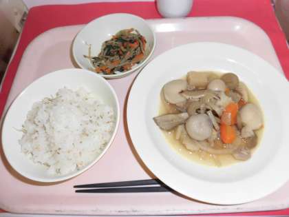 じゃこごはん 牛乳 鶏と里芋のうま煮