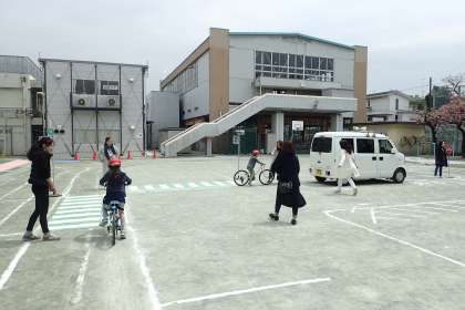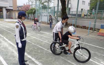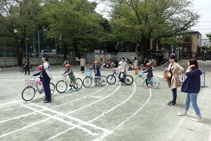 校庭を使用して、3年生は交通ルールを学習しました。警察の方にご指導いただき、保護者の方々にもお手伝いいただきました。実際に自転車に乗りながら、危険なところ、注意しなくてはならないところを学習することができました。これで3年生は一人でも自転車に乗ることができるようになりました。楽しみですね。