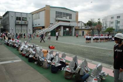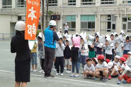 校舎が変わって、または人数が変わって、初めて経験することのある避難訓練でしたが、子ども達は静かに、きちんと避難行動を行うことができました。訓練後、生活指導部の先生が「お・か・し・も」を改めて確認しました。