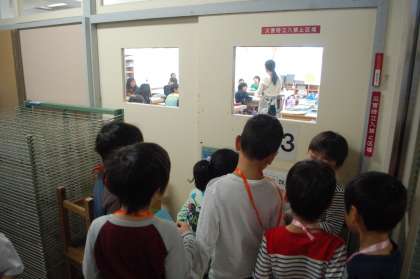 探検するのは校舎だけではありません。体育館、プール、授業中の図工室。