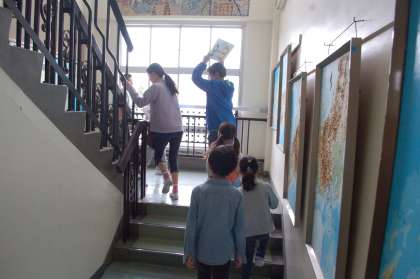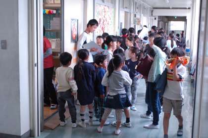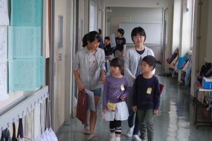 1年生は自分の割り当て場所がわからないので、その班の6年生が教室まで迎えにいきます。