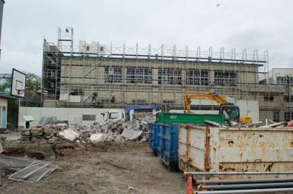 フェンスが建てられ、取り壊しの準備が進んでいるのがわかります。