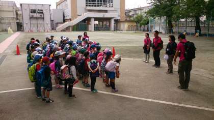 2年遠足、いい天気です。井の頭公園へいざ出発!