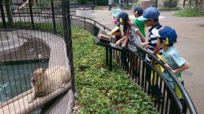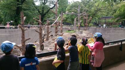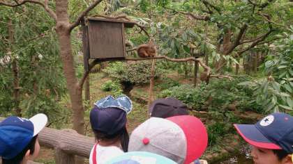 1、2組合同のグループで、動物見学。チームワークでがんばります。