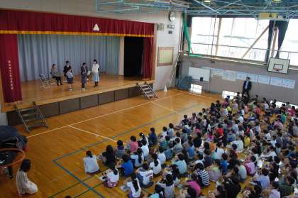 昨年度異動・退職された先生をお呼びして、離任式が行われました。