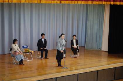 一人ひとり全校に向けて言葉をいただきました。途中、涙を流す先生の姿もあり、会場は終始あたたかな空気に包まれていました。