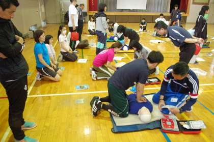 少し前になりますが、5月1日に近隣の小学校(太子堂、多聞、池之上)と合同で救急救命法の訓練を行いました。学校現場では、毎年水泳の学習が始まる前に、必ず救急救命法の訓練を行い、児童の安全に万全を期すようにしています。