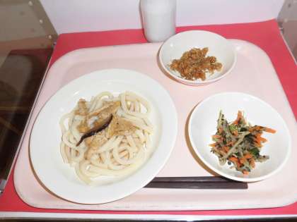 冷やしきつねうどん 牛乳 大豆とじゃこの甘辛揚げ