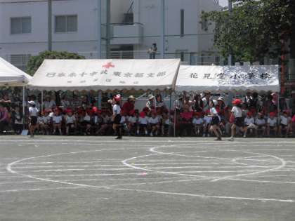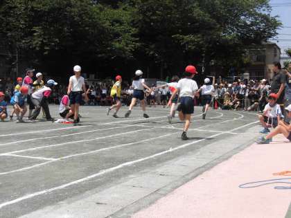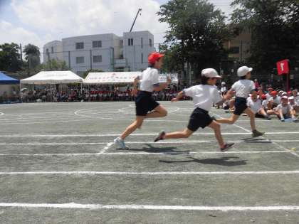 中学年は直線からのカーブでいかにスピードを落とさず走り切れるかが勝負の分かれ道。応援団も、がんばる4年生に応援で背中を後押ししていました。