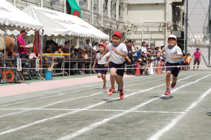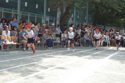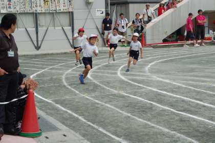 おいしいお弁当を食べた3年生は、さらにパワーアップ!曲線を上手に走りながら、友達との競い合いを楽しみました。