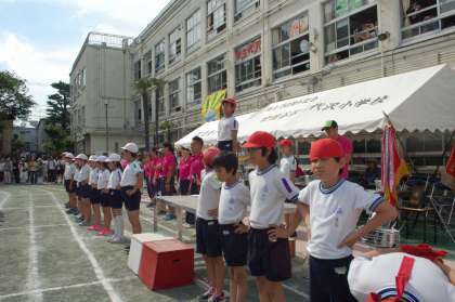 大玉送りが終わり、入場行進後、全校で整理運動を行いました。