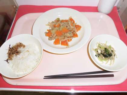麦入りごはん 牛乳 カミカミ佃煮 肉じゃがうま煮