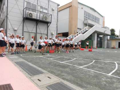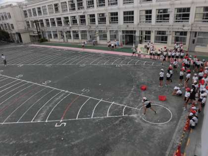 外ではソフトボール投げの種目を1日かけて全学年行いました。40mのラインを超える児童もおり、時折歓声があがりました。