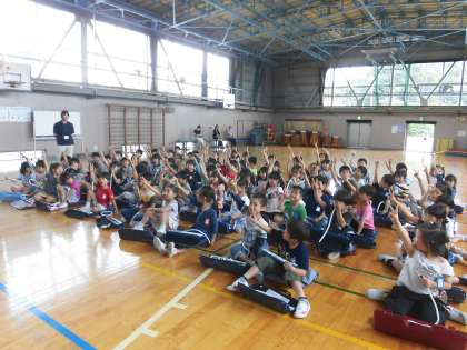 学年合同で、ゲストティーチャーによる鍵盤ハーモニカ講習会を行いました。安全にみんなで楽しく演奏するための注意、唄口は左手で持つこと、タンギングの仕方など、大事な基本的なことを教わりました。1年生の真剣なまなざしから、「これからいろいろな曲をふけるようになりたいな。」という気持ちが伝わってきました。