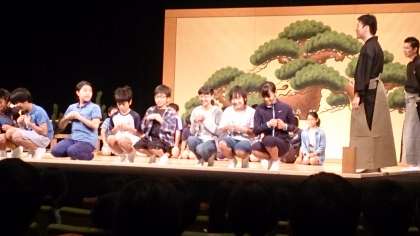 6年生は世田谷区民会館に、古典芸能鑑賞教室に来ています。室町時代から続く狂言の世界を味わっています。まずは、ワークショップでした。このあと、『ぶす』を鑑賞します。