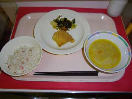 カリカリ梅ごはん 牛乳 イカの南蛮焼き 海藻サラダ