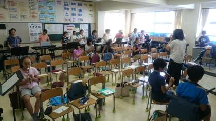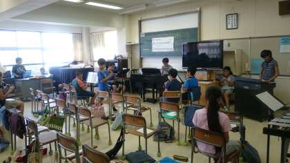 楽しげな演奏の音が聞こえたので、覗いて見ると、音楽の先生から「聞いてってください!」とお誘いを受けました。なんでも今日でいよいよ完成とのこと。合奏練習を重ねた6年生、息がぴったり合っていました。音をお送りできないのが残念です。