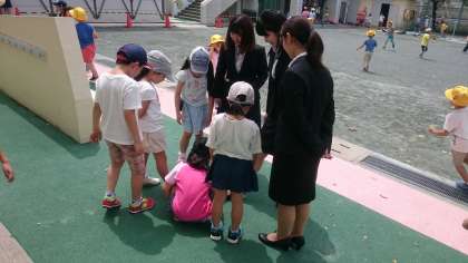 今日は教職を目指す大学1年生17人が、代沢小学校に授業参観に来ました。校長先生から熱い講義を受けた後は、校内を見学。休み時間には子どもたちに話しかけたり、一緒に追いかけっこをしたりしました。
