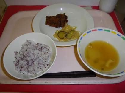 ゆかりごはん 牛乳 鶏のから揚げ 冬瓜スープ