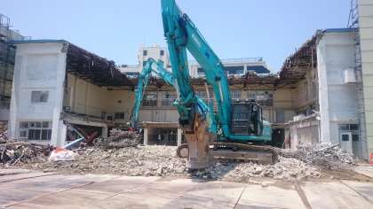 体育館の上屋は取り壊しが終わっていました。今週中に体育館の基礎の解体も終わる予定だそうです。そして7月中旬からは、いよいよ北側校舎の解体が始まるとのことでした。