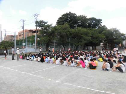 避難行動は非常にスムーズでしたが、ハンカチを持っていない児童が多かったため、避難訓練担当の先生から、ハンカチを常に持っておくように指導がありました。自分の身を守るためにも、習慣化しておきましょう。
