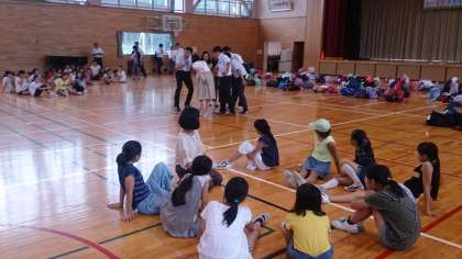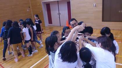 今年度は実習館に半分ずつ泊まるので、少しでも交流を深めるために、みんなで少しゲームをしました。ステイ先の保護者の方も一緒に、ほっこりタイムです。