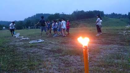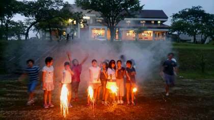 実習館組の今日は、手持ち花火。雨にも降られず、ラッキーです。