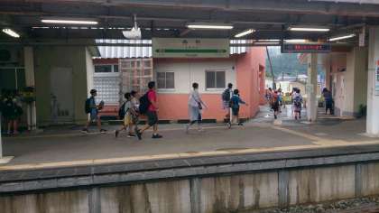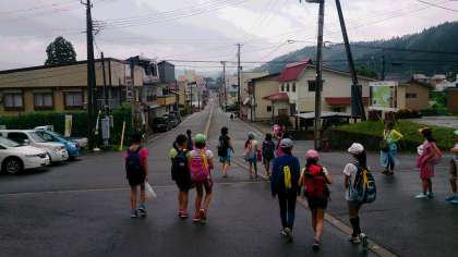 舟形駅を通りすぎ、メインストリートをぬけ、舟形小学校を目指します。