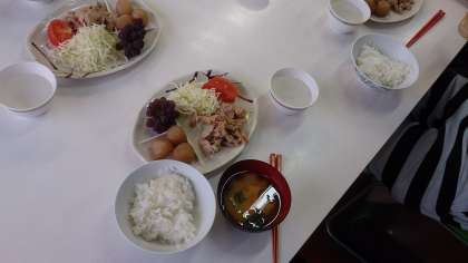 実習館の晩ごはん。お米が美味しいです。いただきます!