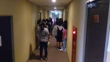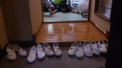 宿での生活が始まりました。まずは、避難訓練。靴そろえは今のところほとんどの班がすばらしいです。