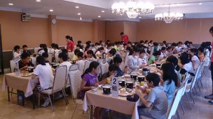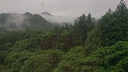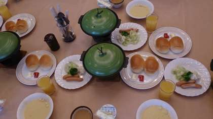 食堂の窓からはこんな景色が見えます。宿舎最後の食事、感謝していただきます。