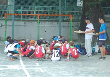 本日最後に紹介する講座は、クリケットです。クリケットバットは、なんと講師の方のお手製です。この日のために、角材を加工し作ってくださいました。はじめはなかなか点数が入りませんでしたが、ルールを工夫したのと、だんだんボールを打つことにも慣れたことで、両チーム大量得点に!28対27の大接戦で大いに盛り上がりました。