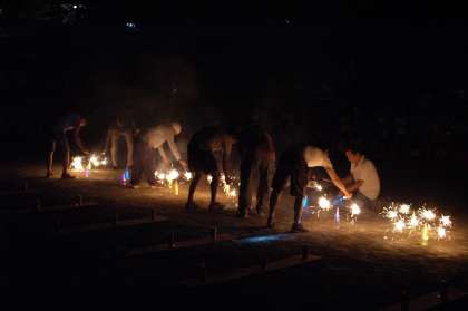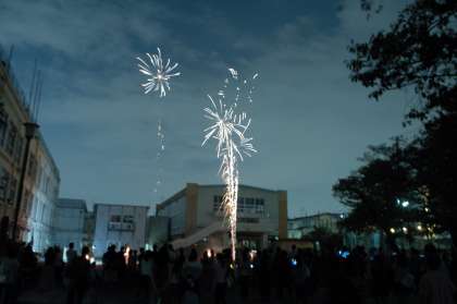 そして後半は、親児の会が誇る打ち上げ花火です。熟練の技で、花火に火をつけていく親父たちの姿は、かっこいいです。夏休みの終わりに、とってもいい思い出ができました。準備から片付けまで、本当にありがとうございました。感謝です。
