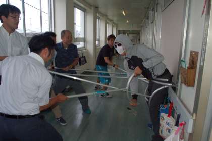 教職員で、凶器を持った不審者が校内に侵入した場合を想定した訓練を行いました。