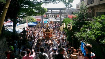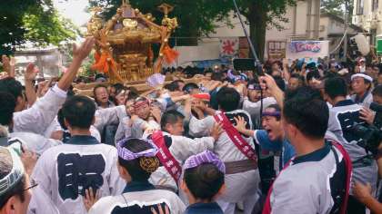土曜日、日曜日と北澤八幡のお祭りでした。天気に恵まれたくさんの人が集っていました。代沢の子どもたちも大勢来ていて、お神輿をかついでいる子どももたくさんいました。やっぱり宮入はすごい盛り上がりでした。副校長先生をはじめ、松本先生、高島先生は親父ネットが出していたクジラの竜田揚げのお店のお手伝い。大人も子どもも秋祭りを大いに楽しんでました。
