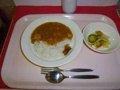 カレーライス 牛乳 福神漬け フレンチサラダ