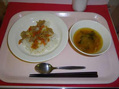 しょうが焼き丼 牛乳 みそ汁